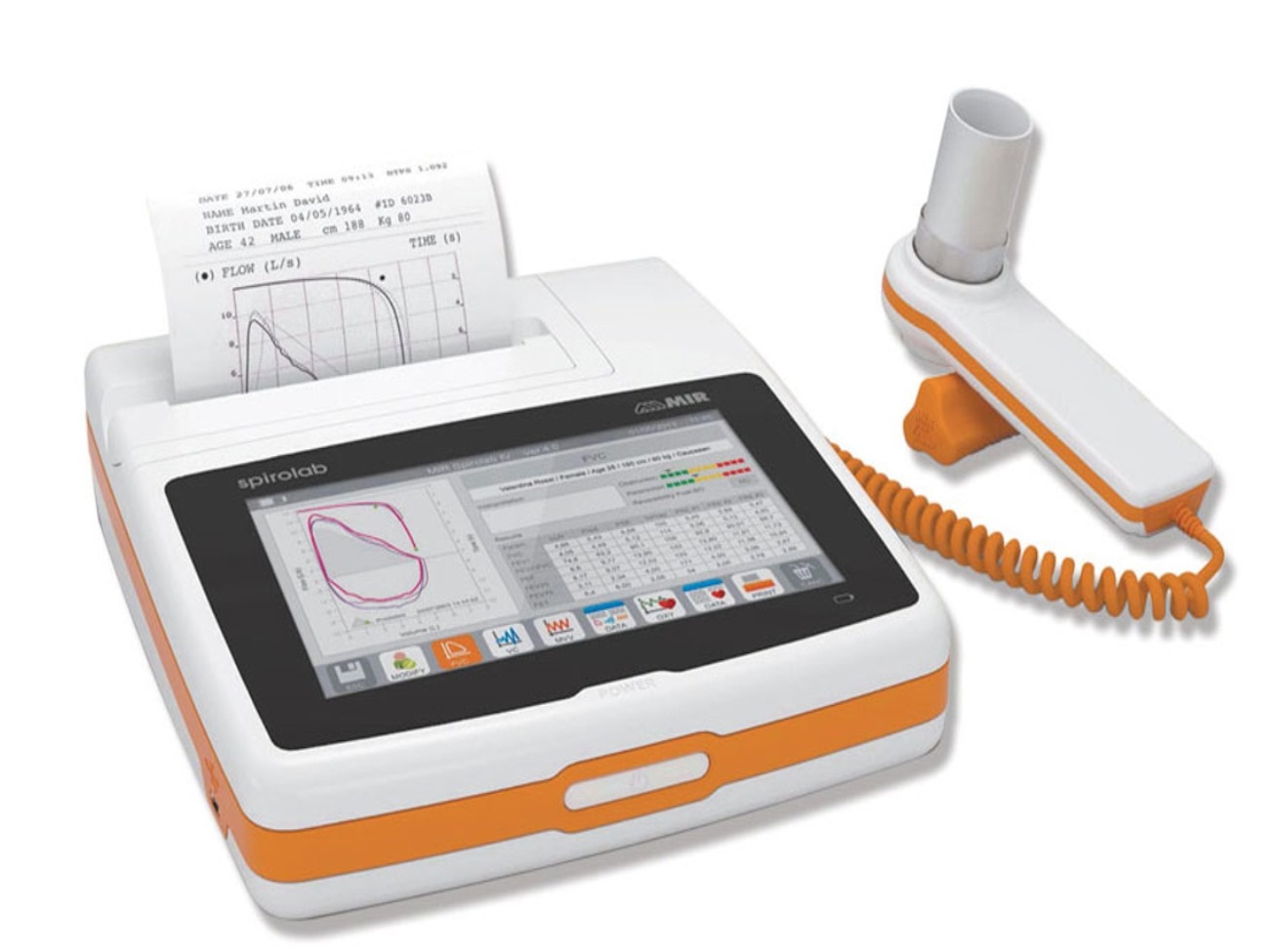 Funcionamiento: Generalmente, el paciente inhala o exhala profundamente a través de una boquilla conectada a un medidor. La mayoría de los modernos son portátiles y pueden generar espirogramas.
